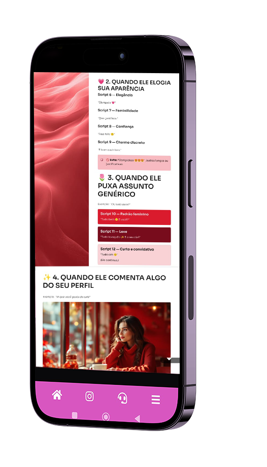 Além do Guia Digital Instagram Magnético  você vai receber TOTALMENTE GRÁTIS  SCRIPST DE CONVERSA! Para quando ele puxar assunto — e você não souber exatamente o que dizer.