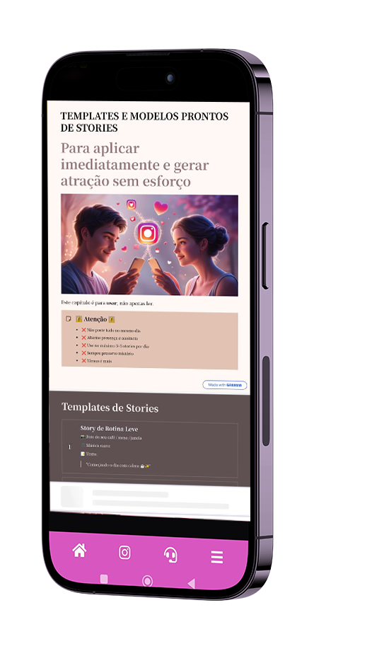 Eu criei o Instagram Magnético: um guia prático, em formato de checklist, para você parar de “esperar a sorte” e começar a atrair a atenção do crush de forma natural e elegante.