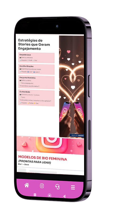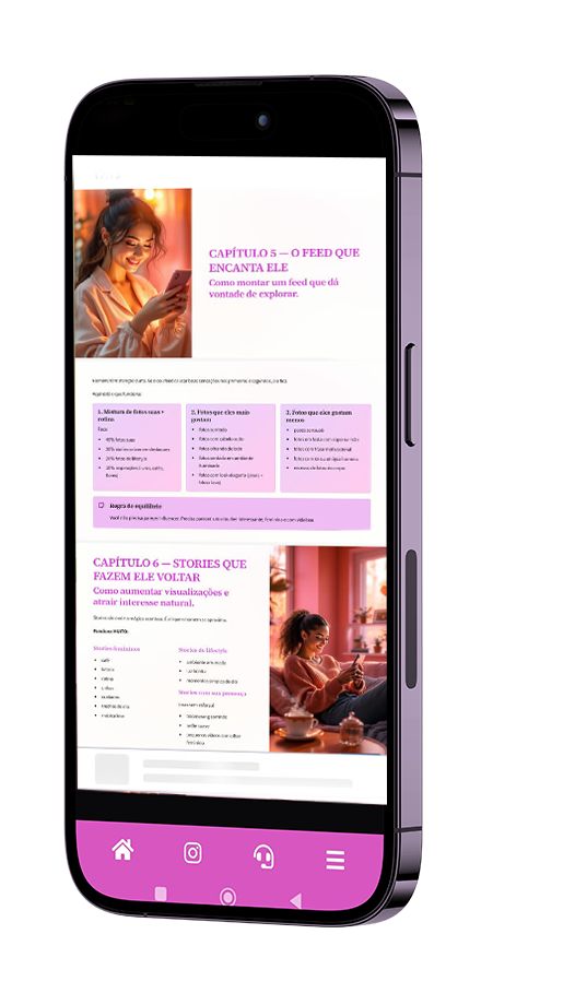 O guia te mostra como se posicionar no Instagram de forma natural, sem se expor demais — o suficiente pra gerar interesse e vontade de se aproximar.